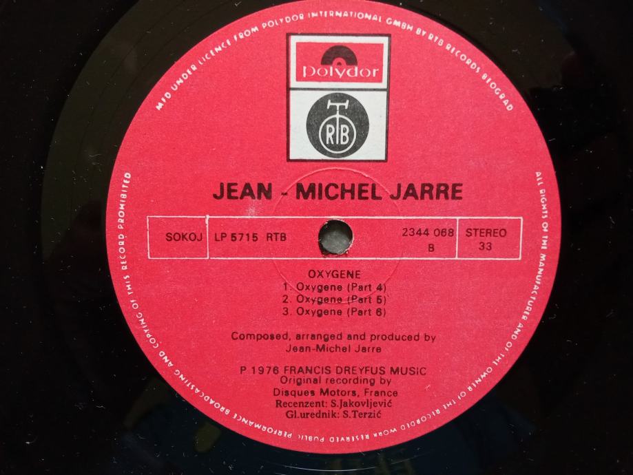 Jean-Michel Jarre – Oxygene, gramofonska ploča, PGP RTB