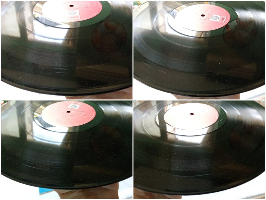 Pogledajte priložene fotografije oglašenog primjerka i YouTube video, koji sadrži iste fotografije veće razlučivosti i autentičnu snimku zvuka na početku prve strane ploče, napravljenu amaterskom opremom. Ploča je u potpunosti slušana neposredno prije oglašavanja, svira bez preskoka igle i stalno daje zvuk otprilike onakav kakav je u spomenutoj snimci, ovisno o kvaliteti opreme kojom se zvuk reproducira. Glede ogrebotina, postoji nekoliko njih, ali sve su neupadljive, plitke i ne izazivaju pucketanje. Uzdužna oštećenja brazdi su mjestimično vidljiva, nisu upadljiva, uzrokuju vrlo tiho pucketanje i zanemarivu distorziju zvuka. Rubovi omota su probijeni i zakrpani naljepnicama postavljenim na njegovoj netiskanoj strani.