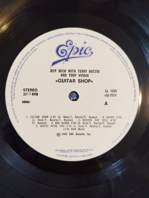 JEFF BECK WITH TERRY BOZZIO AND TONY HYMAS Lp