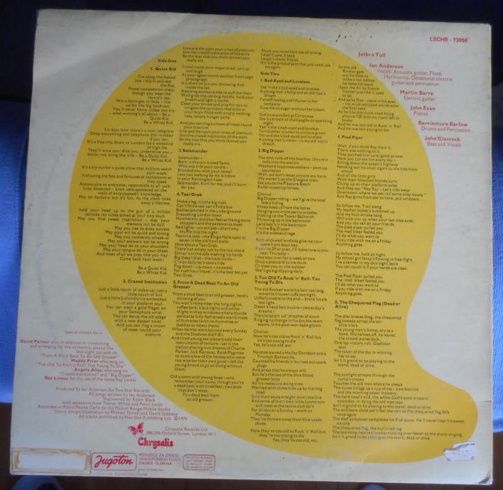JETHRO TULL TOO OLD TO ROCK 'N' ROLL TOO YOUNG TO LP GRAMOFONSKA PLOČA
