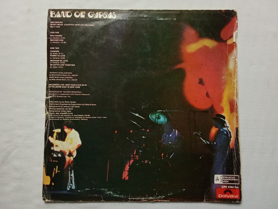 Jimi Hendrix – Band Of Gypsys, gramofonska ploča, PGP RTB 1971.