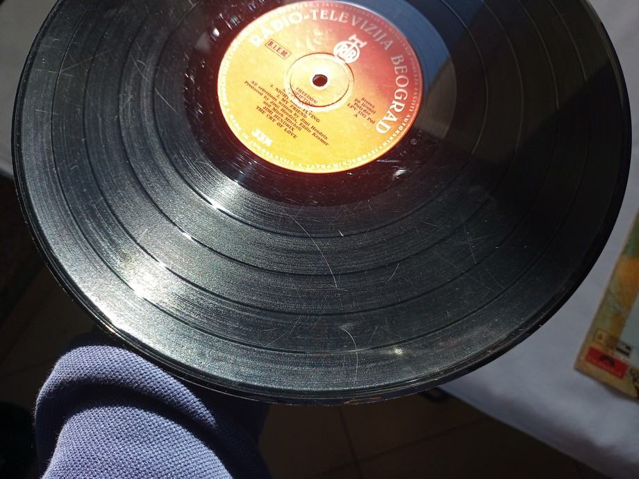 Pogledajte priložene fotografije i video snimku, koja sadrži fotografije visoke razlučivosti oglašenog primjerka i autentičnu snimku zvuka s početka prve strane, načinjenu amaterskom opremom. Sadržaj ploče je u potpunosti poslušan, ona svira bez preskoka igle i u svim predjelima daje zvuk približno jednak onome u spomenutoj snimci, ovisno o kvaliteti opreme za reprodukciju. Ploča nije izobličena, poprilično je izgrebana, a mjestimično su upadljiva i oštećenja brazdi. Rubovi omota su ojačani selotejpom. Fotografije priložene uz oglas i video govore sve o izgledu premeta, a većina fotografija koje prikazuju ploču napravljene su dok je ploča bila izravno izložena sunčevoj svjetlosti i zato oštećenja ploče na njima izgledaju vrlo izraženo.