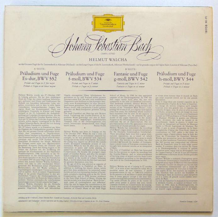 Johann Sebastian Bach – Helmut Walcha, LP gramofonska ploča NM
