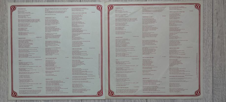 Ploča vizualno: Labeli su jako čisti i uredni, bez ikakvih tragova spindle weara i izgledaju kao novi. Ploča ima sjaj nove i djeluje jako čisto i uredno bez ikakvih friževa ili frižića. Tek temeljitim pregledom na direktnom svjetlu sam uočio da ploča ima više onih najsitnijih crtica koje se u uvjetima normalne osvijetljenosti ni ne vide već samo kao refleksije na direktnom svjetlu. Vizualno ploča izgleda Vg+ očuvana.