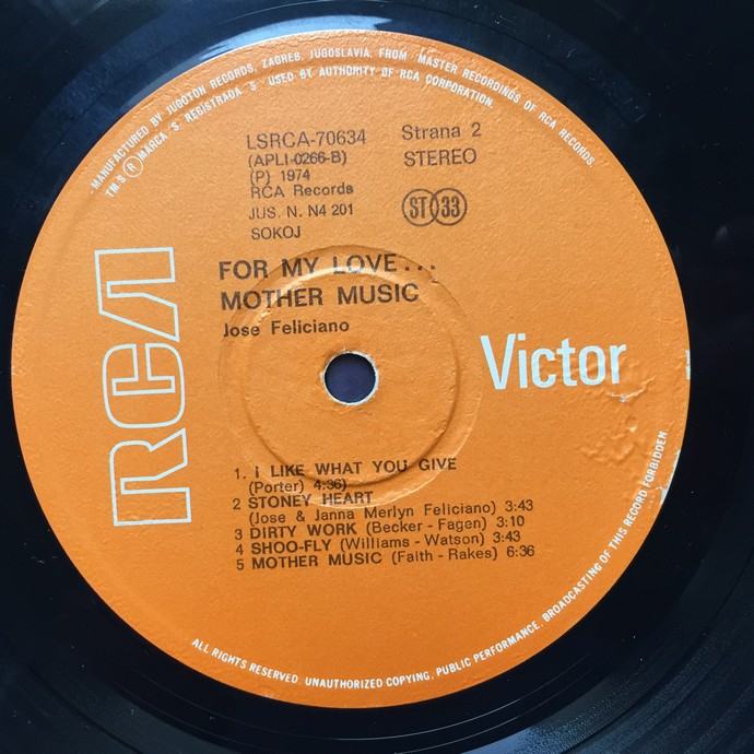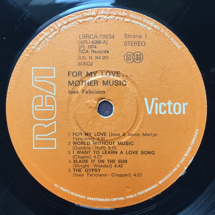 José Feliciano – For My Love...Mother Music, LP ploča, Jugoton