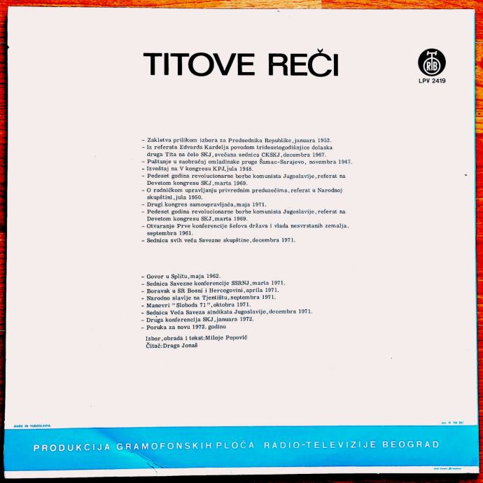 Josip Broz Tito - Titove Reči (LP)