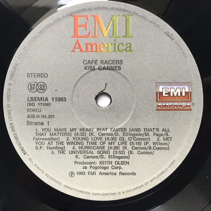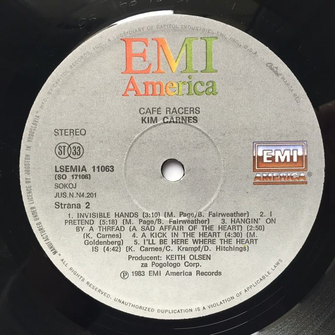 Kim Carnes – Café Racers, gramofonska LP ploča, Jugoton 1984.