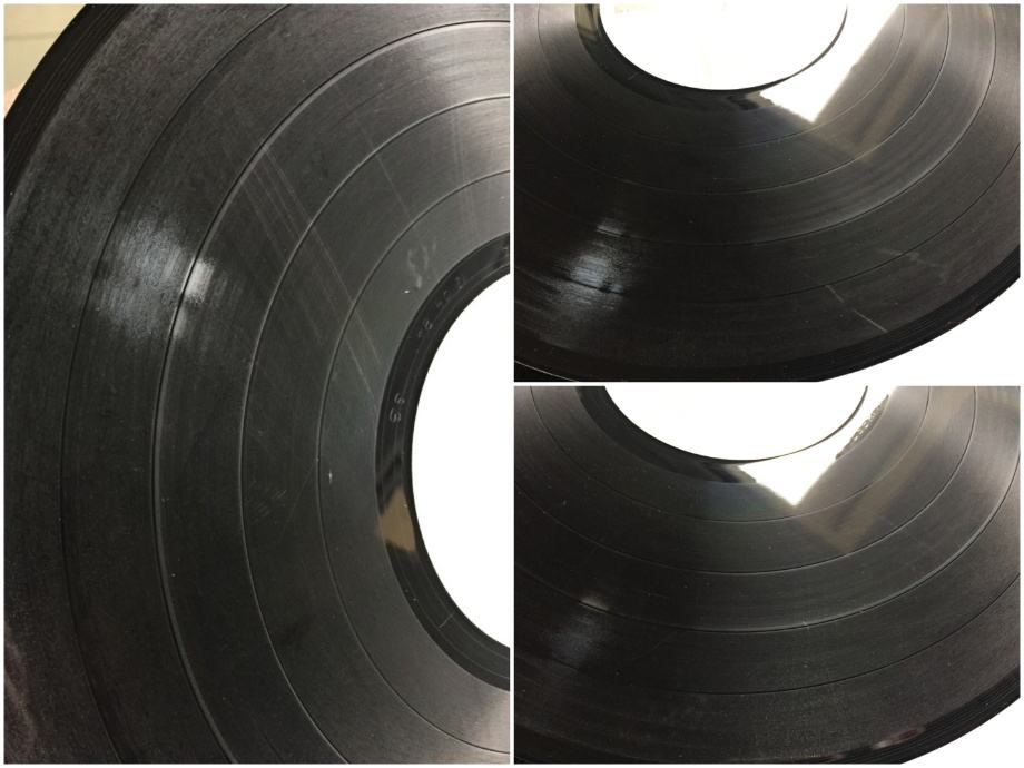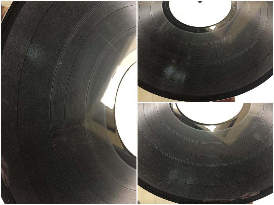 Pogledajte priložene fotografije oglašenog primjerka i YouTube video, koji sadrži iste fotografije veće razlučivosti i autentičnu snimku zvuka s početka prve strane, napravljenu amaterskom opremom. Ploča je u potpunosti poslušana, svira bez preskoka igle i daje zvuk otprilike onakav kakav je u spomenutoj snimci, ovisno o kvaliteti opreme kojom se zvuk reproducira. Glede ogrebotina, mnogo ih je, sve su neupadljive, plitke i ne utječu na zvuk. Uzdužna oštećenja brazdi su mjestimično vidljiva, nisu upadljiva, uzrokuju vrlo tiho pucketanje i jedva primjetnu distorziju zvuka. Rubovi vanjskog omota nisu probijeni. Ostalo o stanju oglašenog predmeta govore fotografije i video.