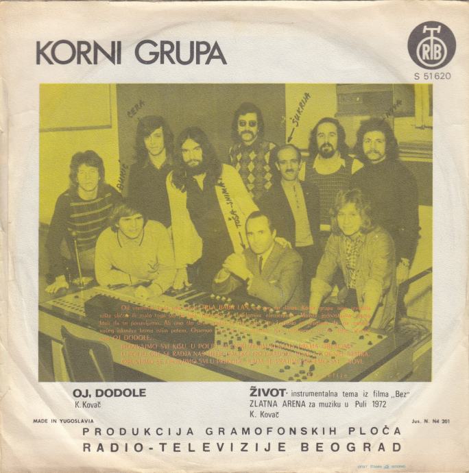 KORNI GRUPA OJ DODOLE / ŽIVOT SINGL GRAMOFONSKA PLOČA