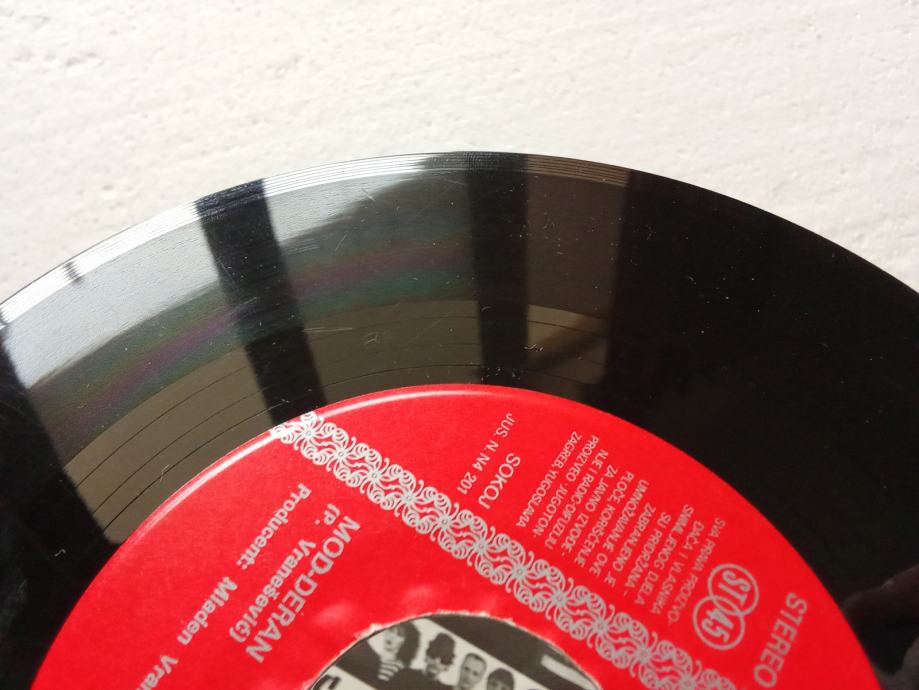 Pogledajte priložene fotografije oglašenog primjerka i YouTube video, koji sadrži iste fotografije i autentičnu snimku zvuka s početka prve strane, napravljenu amaterskom opremom. Ploča je u potpunosti slušana neposredno prije oglašavanja, svira bez preskoka igle i stalno daje zvuk otprilike onakav kakav je u spomenutoj snimci, ovisno o kvaliteti opreme kojom se zvuk reproducira. Glede ogrebotina, postoje mnoge, sve su plitke i ne izazivaju pucketanje. Uzdužna oštećenja brazdi su mjestimično vidljiva, uzrokuju tiho pucketanje i zanemarivu distorziju zvuka. Rubovi omota nisu probijeni.