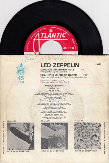 LED ZEPPELIN IMMIGRANT SONG SINGL GRAMOFONSKA PLOČA