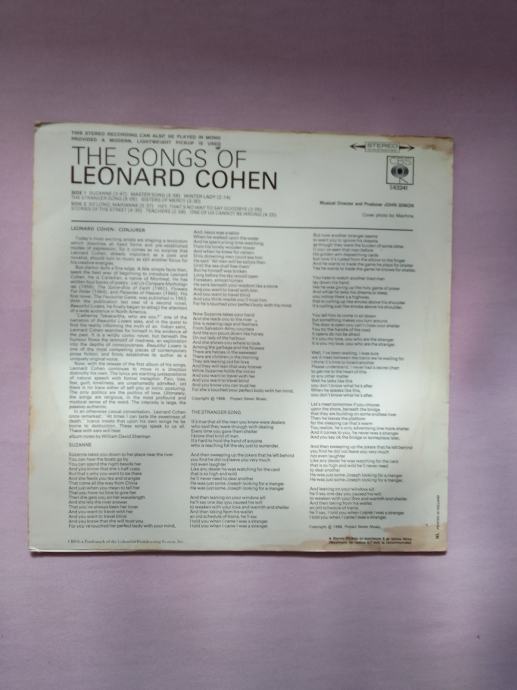 Prodajem LP ploču "The Songs of Leonard Cohen" na CBS Records etiketi. Radi se o kultnom prvom studijskom albumu kanadskog kantautora iz 1967. godine, s nezaboravnim pjesmama poput "Suzanne", "So Long, Marianne" i "Sisters of Mercy". Ploča je u odličnom stanju, a omot pokazuje autentičan vintage izgled s originalnim portretom umjetnika na prednjoj strani i popisom pjesama s tekstovima na stražnjoj.