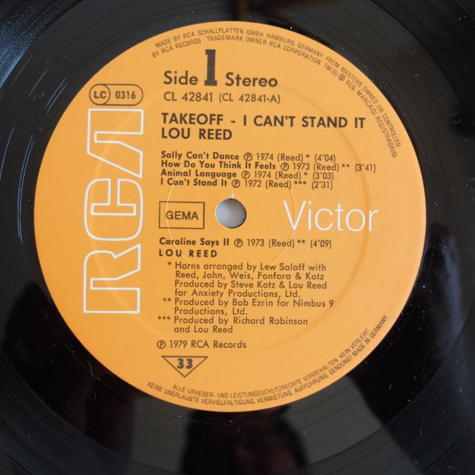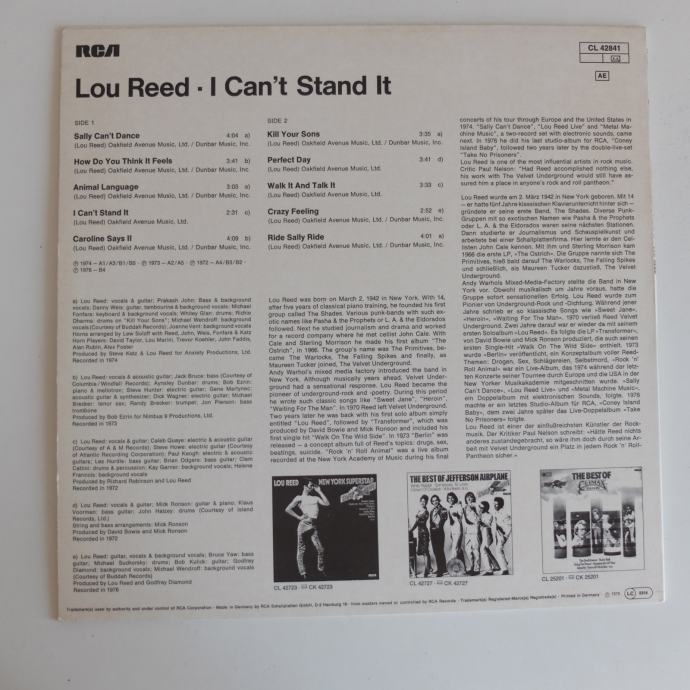 Lou Reed – I Can't Stand It, German Press
