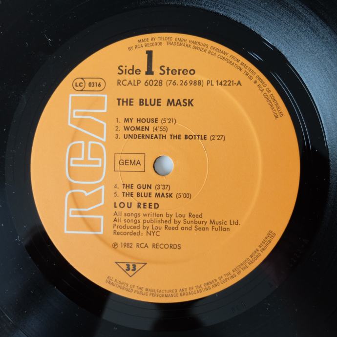 Prodajem gramofonsku LP ploču Lou Reed – The Blue Mask