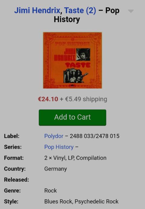 Pop HISTORY dvije ploče Taste i Hendrix 24eur.