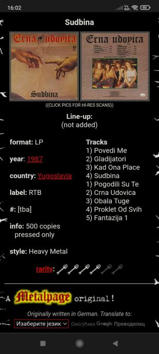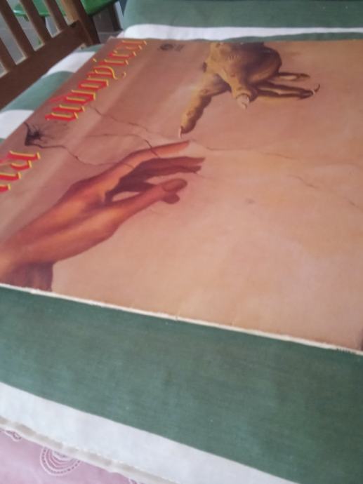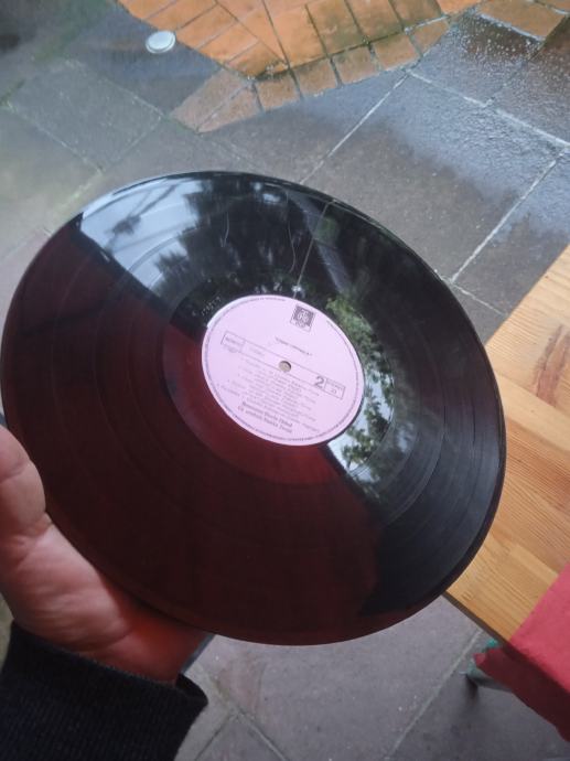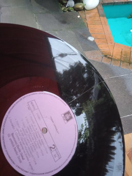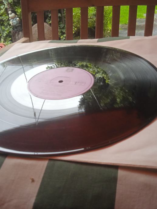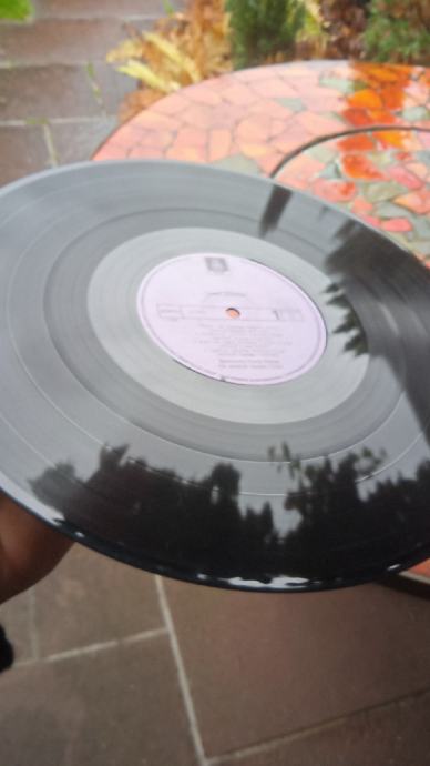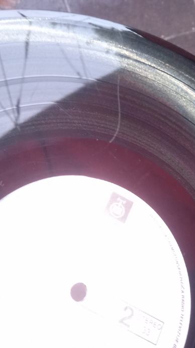Na drugoj strani je duža ogrebotina preko cijelog medija.i KRIVUDAVA JE..JER NA PLOČI IMA ODSJAJ RAVNE KONSTRUKCIJE PRIPADA DVORIŠTU I IZ ISKUSTVA SLIKAM NA ODRAZU SVJETLOSTI KOJA DAJE STROGO KRITIČKU SLIKU.dva krivudava oštećenja su vidljiva kraće i duže ne utiče na reprodukciju i kada se utiša..vidljivo na slici.Album je urađen u 500kopija.