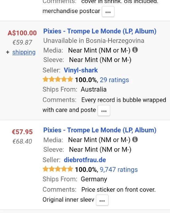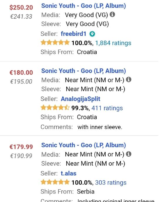 Tri albuma legendarnih i trazenih kultnih bendova pa sam pripojio njima i ove poljake..francusko izdanje je od ambicje i vrjedi pausalno kao na discogsu skrinšot aktuelan od 6.8 2023 pixies..i joy i sonic INACE IMATE MOJU VECINU NOSACA ZVUKA NA YOUTUBE GAZIC JASMIN..