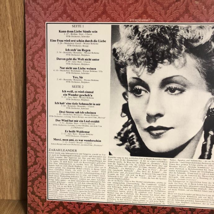 LP gramof. ploča: Zarah Leander. Die großen Erfolge non gestern. Wunschkonzert Nr 1