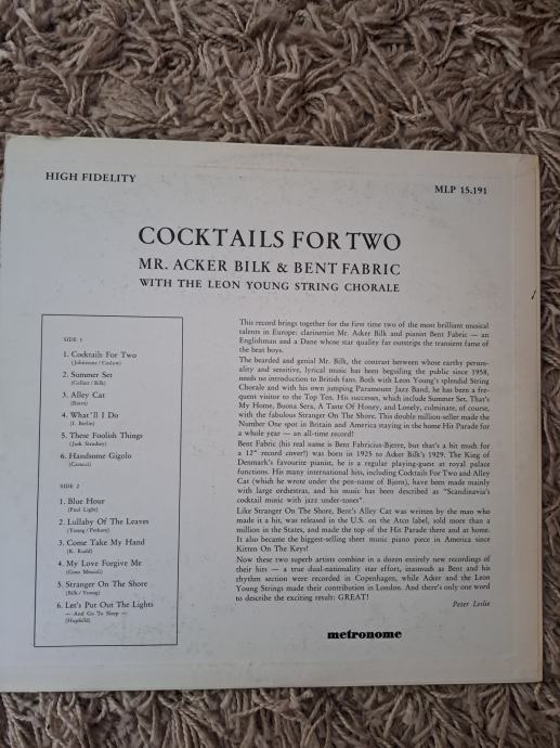 LP MR. ACKER BILK & BENT FABRIC COCTAILS FOR TWO