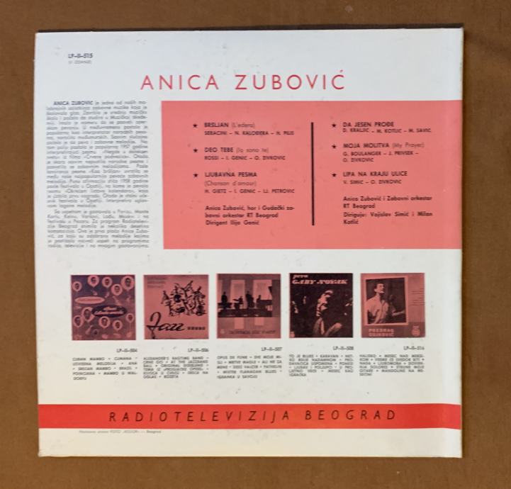 LP PLOČA, MANJA, ANICA ZUBOVIĆ - BRŠLJAN