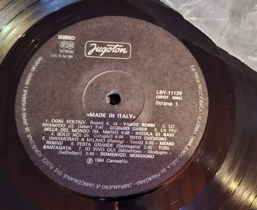 Various – Made In Italy, Jugoton – LSY 11125 1985 NM