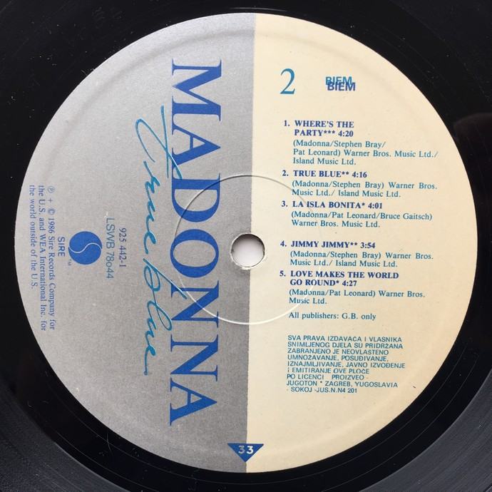 Madonna – True Blue, gramofonska LP ploča, oštećena, Jugoton 1987.
