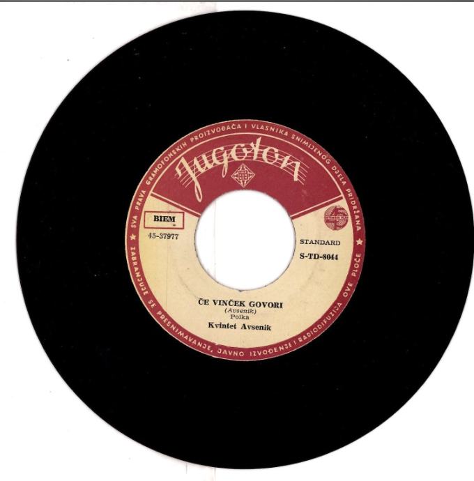 Kvintet Avsenik* – Če Vinček Govori / Vaška Polka Jugoton – S-TD-8044, Telefunken – S-TD-8044 Mehurček v izteku