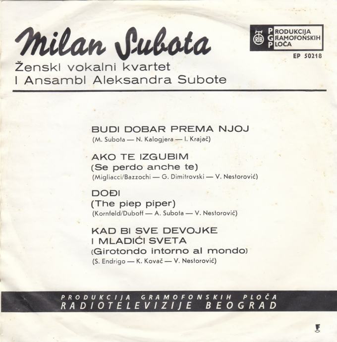 MILAN SUBOTA BUDI DOBAR PREMA NJOJ SINGL GRAMOFONSKA PLOČA