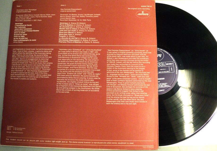 Side 1: Ascenseur Pour L'échafaud. Original Sound Track