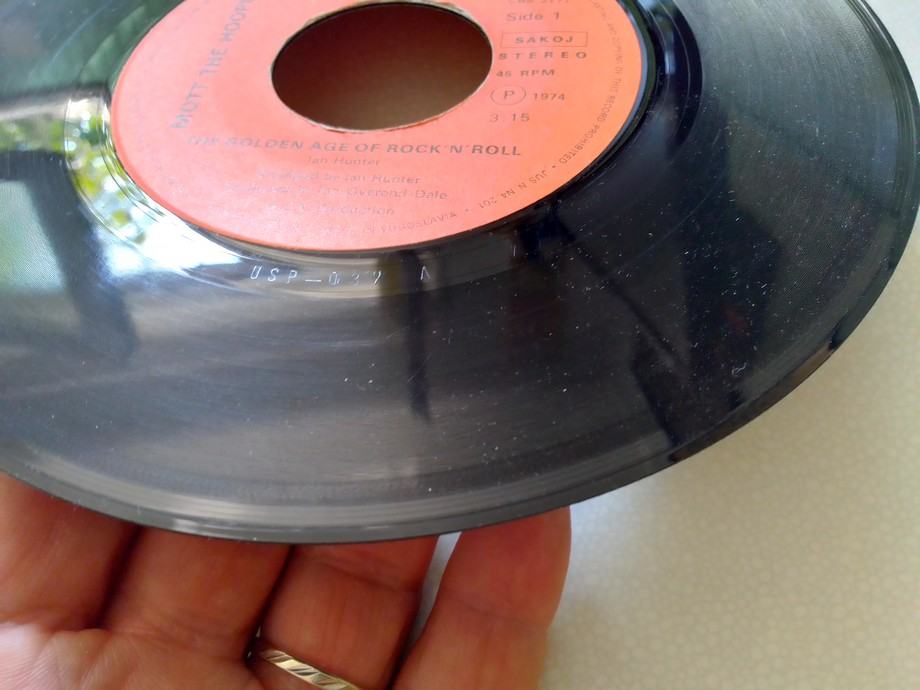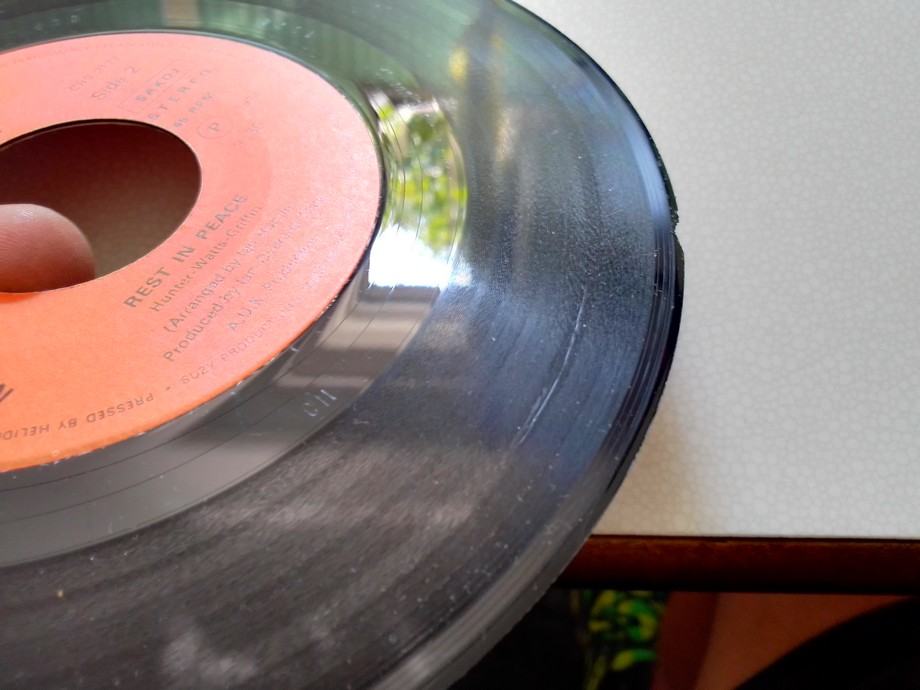 Pogledajte priložene fotografije oglašenog primjerka i YouTube video, koji sadrži iste fotografije veće razlučivosti i autentičnu snimku zvuka s početka prve strane, napravljenu amaterskom opremom. Ploča je u potpunosti poslušana, svira bez preskoka igle i daje zvuk otprilike onakav kakav je u spomenutoj snimci, ovisno o kvaliteti opreme kojom se zvuk reproducira. Glede ogrebotina, sve su neupadljive, plitke i ne utječu na zvuk. Svo tiho pucketanje, šum i umjerena distorzija koji se čuju u snimci uzrokovani su uzdužnim oštećenjima u brazdama. Ostalo o stanju oglašenog predmeta govore fotografije i video.