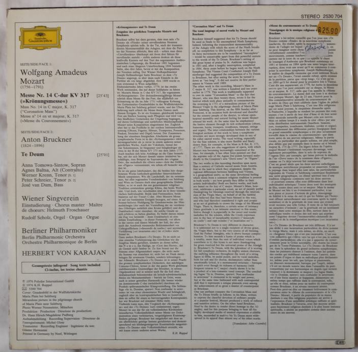 Mozart* / Bruckner* - Anna Tomowa-Sintow · Agnes Baltsa · Werner Krenn · Peter Schreier · José van Dam · Wiener Singverein · Berliner Philharmoniker · Herbert von Karajan – Mozart: Krönungsmesse - Coronation Mass / Bruckner: Te Deum