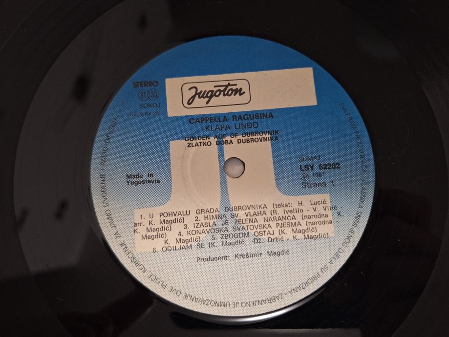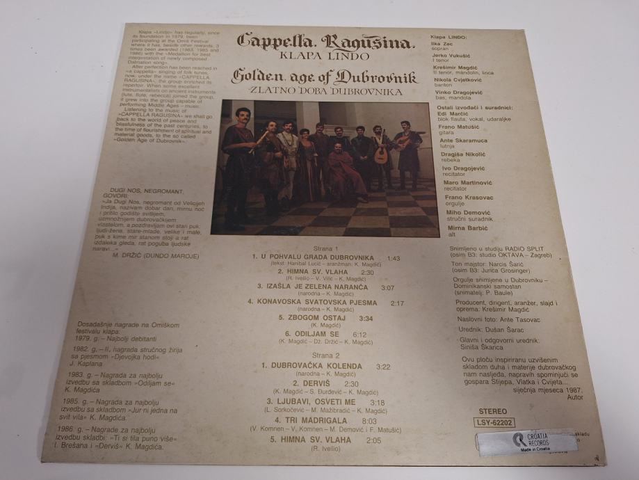 Prodajem gramofonsku ploču Klapa Linđo & Capella Ragusina – “Zlatno doba Dubrovnika”.