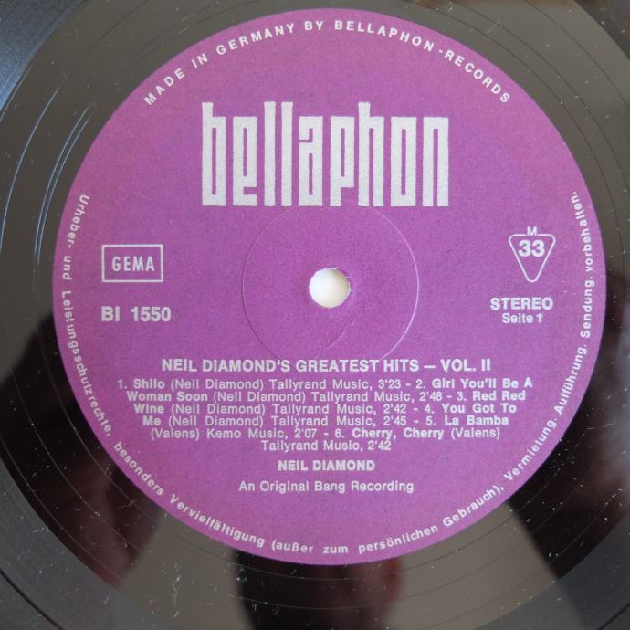 Neil Diamond – Greatest Hits Vol. 2, German Press
