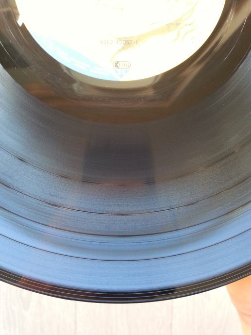 Ploča vizualno: Labeli su jako čisti i uredni, bez ikakvih tragova spindle weara te izgledaju kao novi. Ploča ima fantastičan sjaj i djeluje jako čisto i uredno bez ikakvih dubljih friževa koji bi se mogli opipati. Tek temeljitim pregledom sam uočio jedan sitan površinski frižić na A strani (slika 12) i više onih najsitnijih crtica nastalih od vađenja iz papirnatog innera koje se u uvjetima normalne osvijetljenosti ni ne vide već samo kao refleksije na direktnom svjetlu Vizualno ploča izgleda Vg+ očuvana.