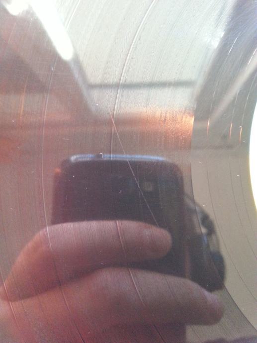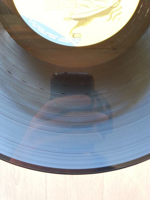 Ploča vizualno: Labeli su jako čisti i uredni, bez ikakvih tragova spindle weara te izgledaju kao novi. Ploča ima fantastičan sjaj i djeluje jako čisto i uredno bez ikakvih dubljih friževa koji bi se mogli opipati. Tek temeljitim pregledom sam uočio jedan sitan površinski frižić na A strani (slika 12) i više onih najsitnijih crtica nastalih od vađenja iz papirnatog innera koje se u uvjetima normalne osvijetljenosti ni ne vide već samo kao refleksije na direktnom svjetlu Vizualno ploča izgleda Vg+ očuvana.