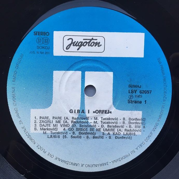 Nikola Marković- Giba I Orfej, gramofonska LP ploča, Jugoton 1985.