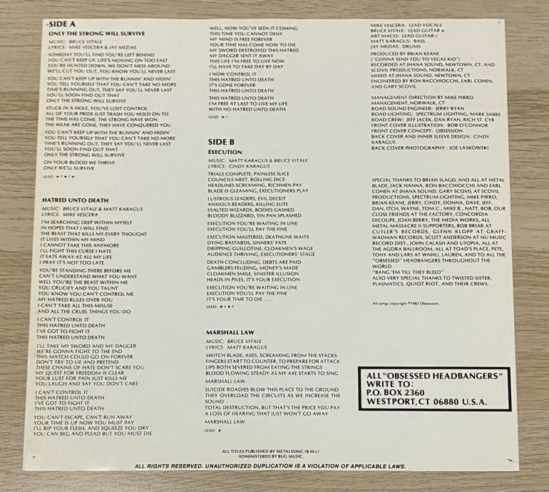 Obsession – Marshall Law (1983) Američko izdanje