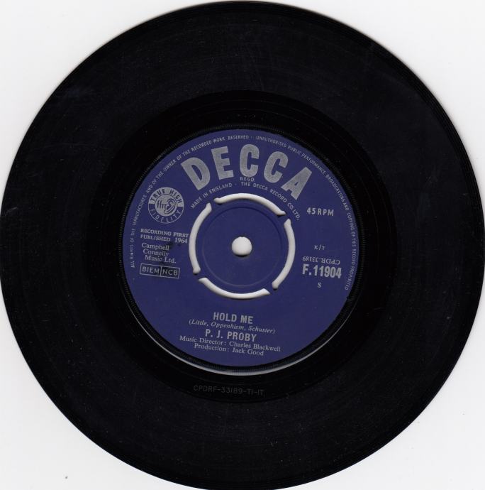 P. J. PROBY HOLD ME / THE TIP OF MY FINGERS SINGL GRAMOFONSKA PLOČA