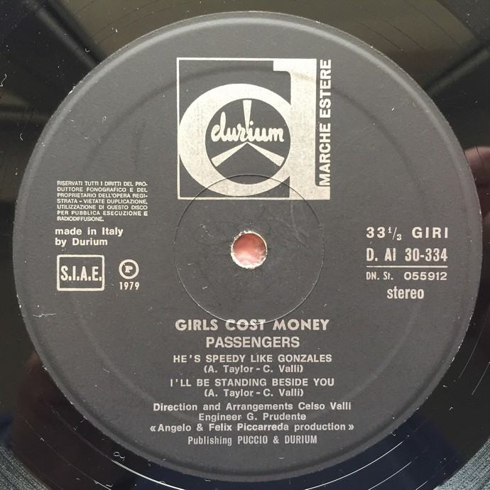 Passengers – Girls Cost Money, Durium Marche Estere 1979., Italija