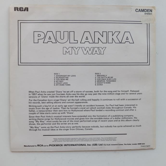 Prodajem gramofonsku LP ploču Paul Anka – My Way