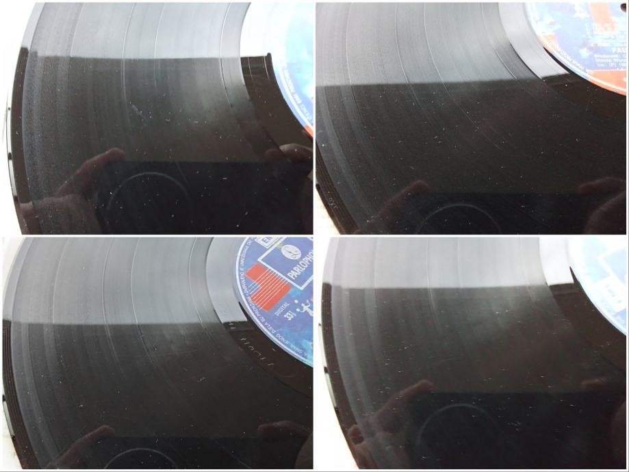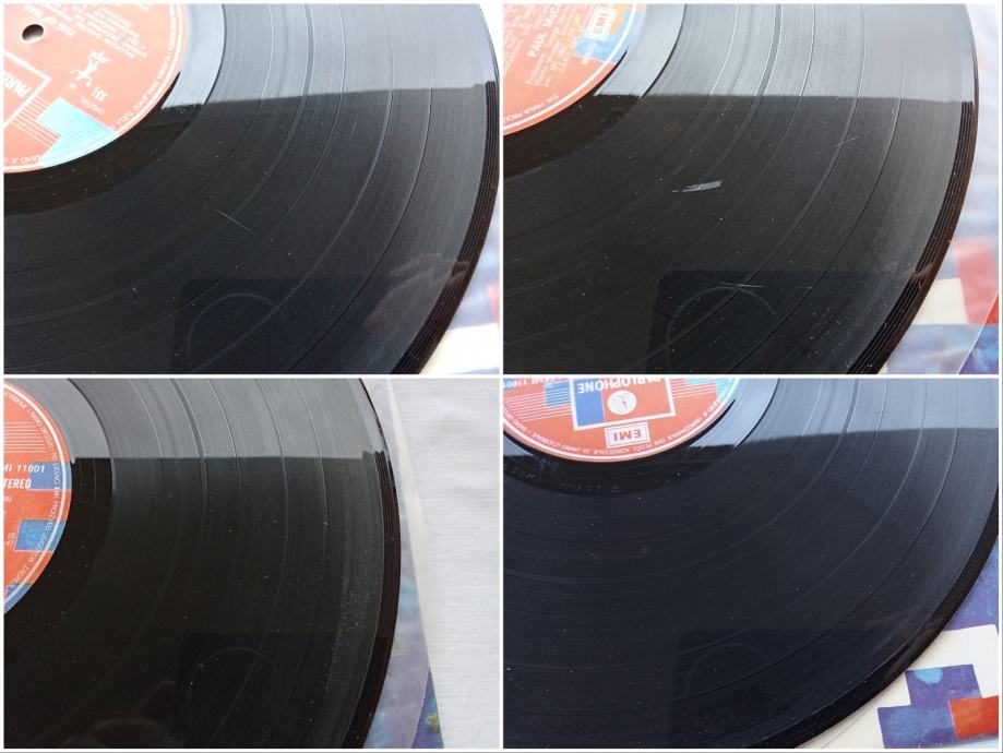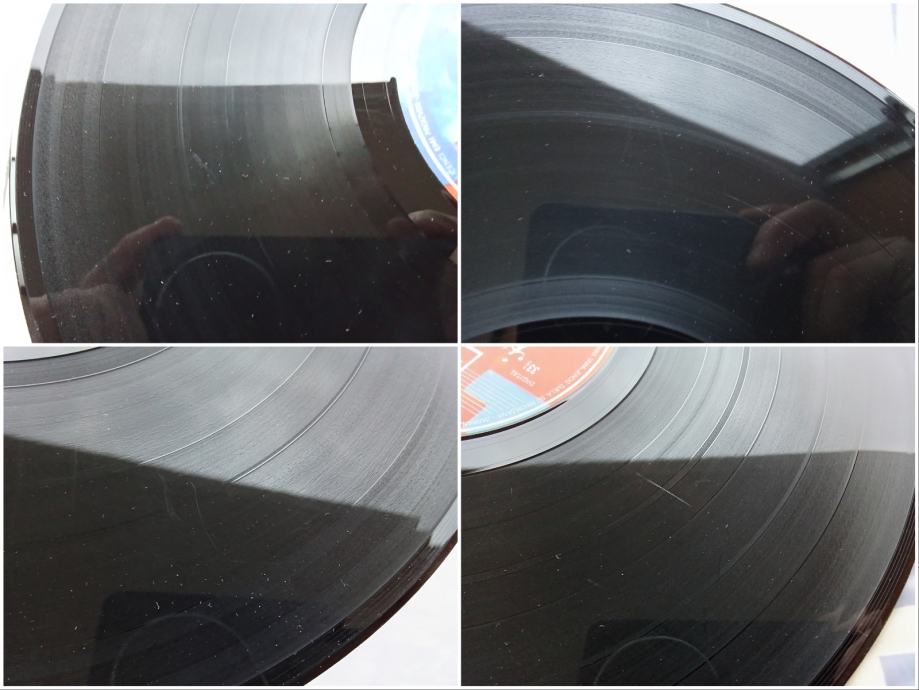 Pogledajte priložene fotografije oglašenog primjerka i YouTube video, koji sadrži iste fotografije veće razlučivosti i autentičnu snimku zvuka na početku prve strane ploče, napravljenu amaterskom opremom. Ploča je u potpunosti slušana neposredno prije oglašavanja, svira bez preskoka igle i stalno daje zvuk otprilike onakav kakav je u spomenutoj snimci, ovisno o kvaliteti opreme kojom se zvuk reproducira. Glede ogrebotina, postoje mnoge, neke su upadljive, ali sve su plitke i ne izazivaju značajno pucketanje. Uzdužna oštećenja brazdi su mjestimično vidljiva, nisu upadljiva, uzrokuju vrlo tiho pucketanje i zanemarivu distorziju zvuka. Rubovi omota nisu ni probijeni niti rascijepljeni.