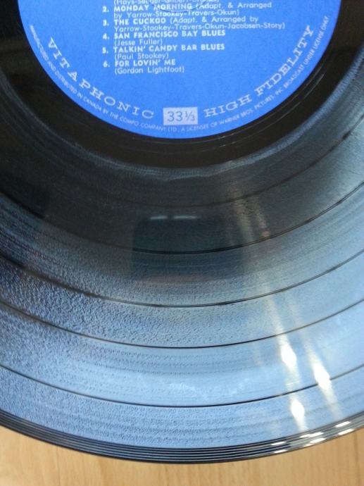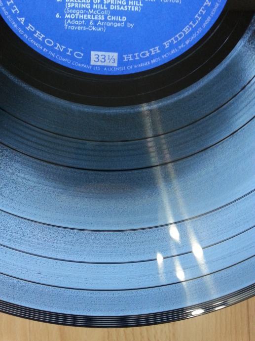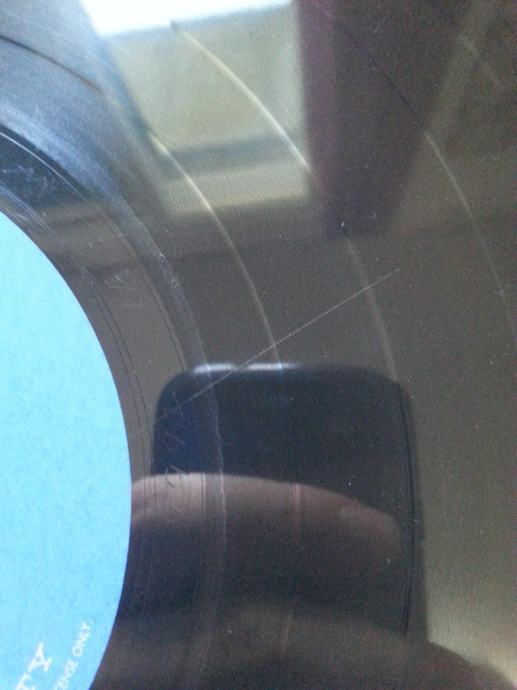 Ploča vizualno: Labeli su jako čisti i uredni, bez ikakvih tragova spindle weara te izgledaju kao novi.. Ploča ima sjaj nove i djeluje jako čisto i uredno bez ikakvih dubljih friževa. Tek temeljitim pregledom sam uočio da ima nekoliko onih najsitnijih površinskih frižića (slike 13 i 19) koji se ne mogu opipati pod prstom te ne utječu na samu reprodukciju. Vizualno ploča izgleda Ex očuvana.