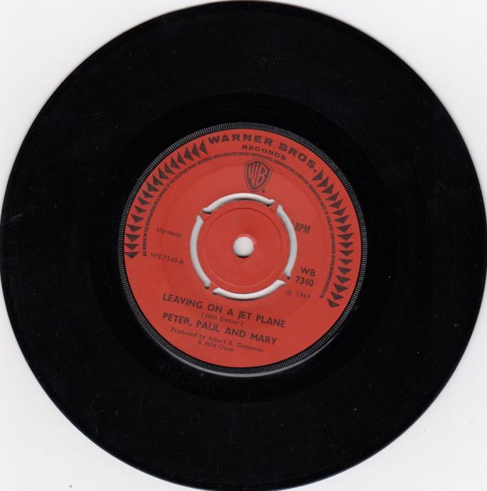 PETER PAUL AND MARY LEAVING ON A JET PLANE SINGL GRAMOFONSKA PLOČA