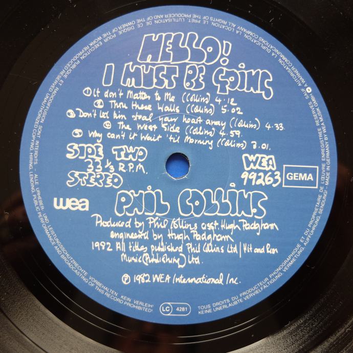 Prodajem gramofonsku LP ploču Phil Collins – Hello, I Must Be Going!