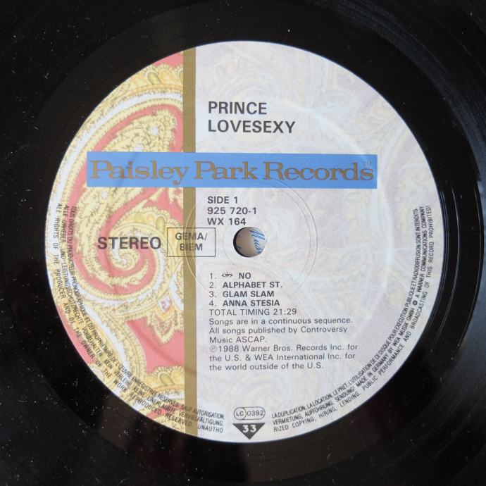 Izdavač Paisley Park Germany, godina izdanja 1988