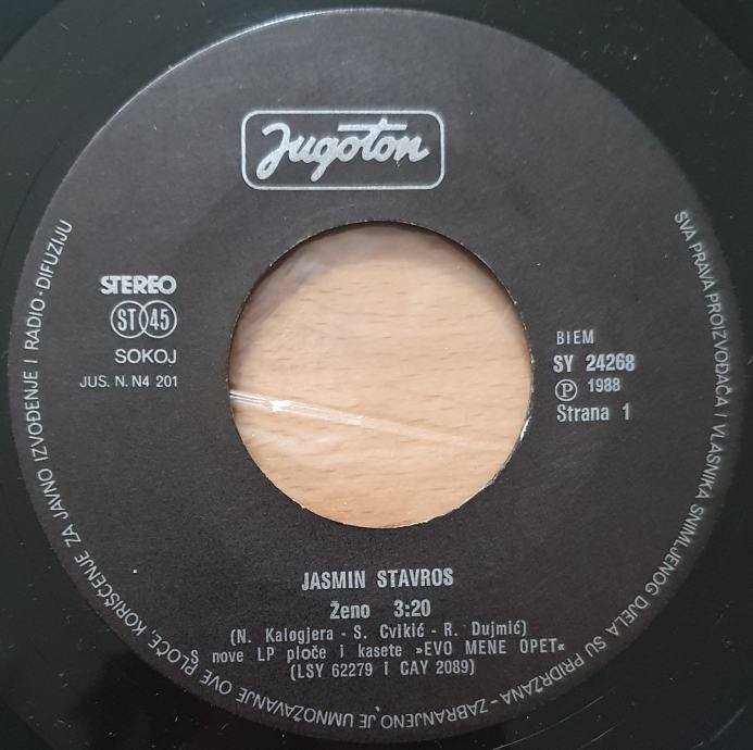 Jasmon Stavros - Ženo / Evo mene opet - 8€