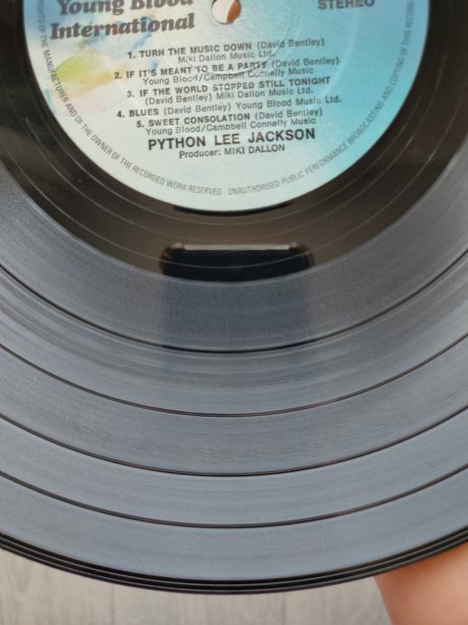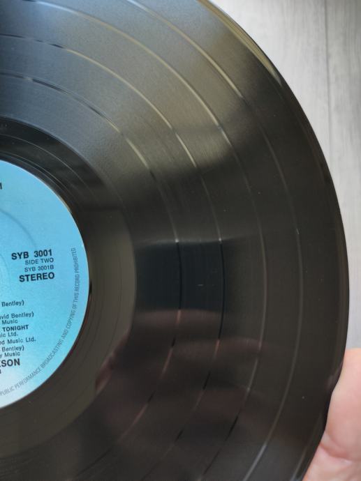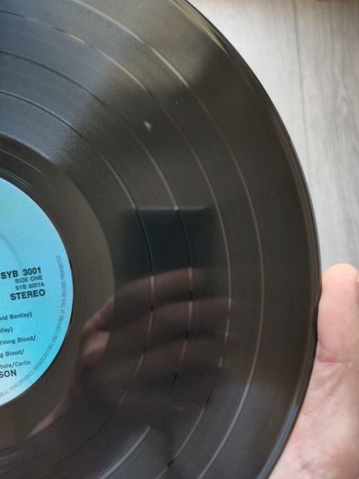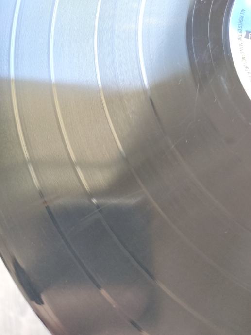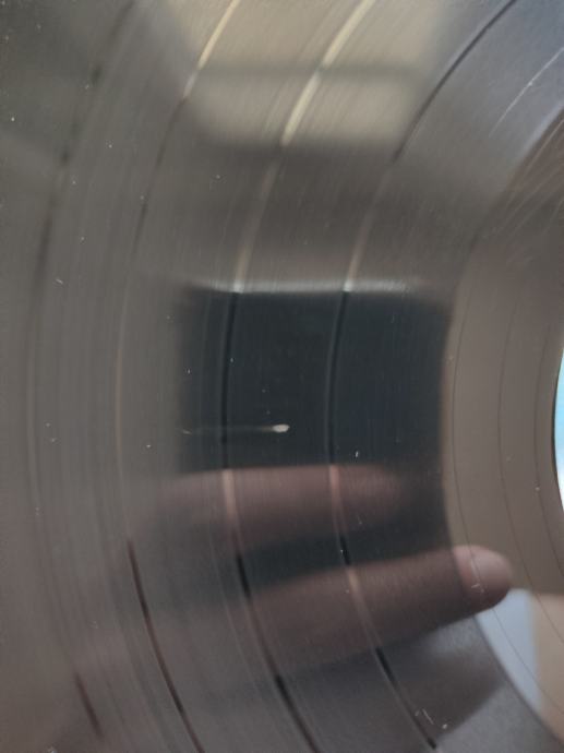 Ploča vizualno: Labeli su jako čisti i uredni, bez ikakvih tragova spindle weara i izgledaju kao novi. Ploča ima sjaj nove i djeluje jako čisto i uredno bez ikakvih dubljih friževa Tek temeljitim pregledom na direktnom svjetlu sam uočio da ploča ima nekoliko površinskih frižića (slike 9 i 15) i nešto onih najsitnijih crtica koje se u uvjetima normalne osvijetljenosti ni ne vide već samo kao refleksije na direktnom svjetlu. Vizualno ploča izgleda Vg+ očuvana.