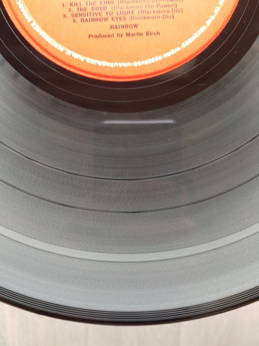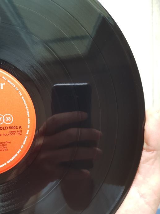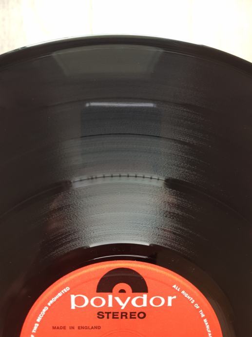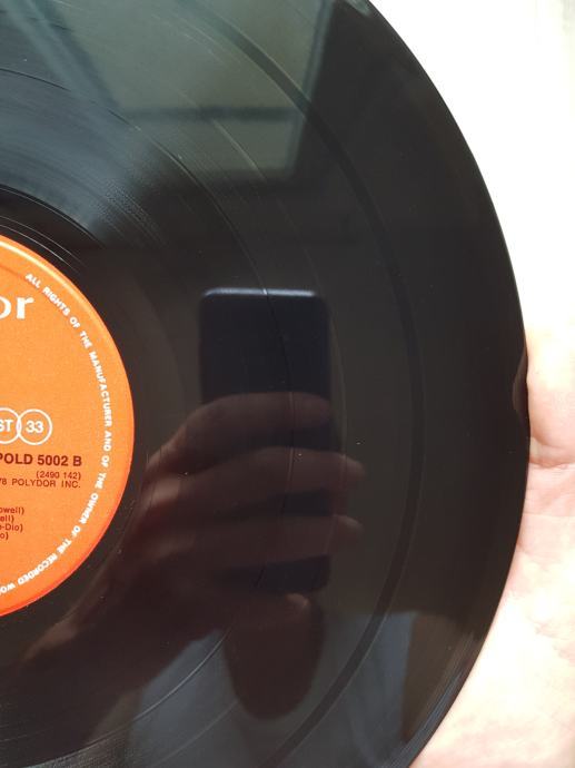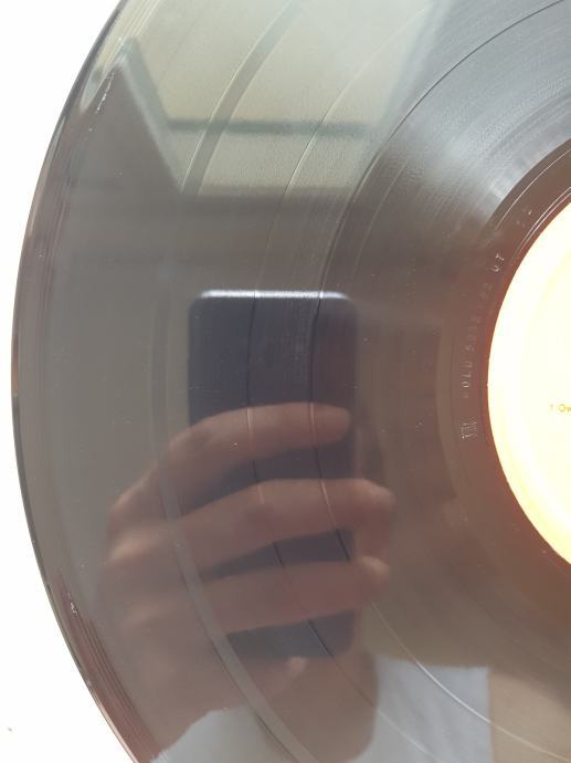 Ploča vizualno: Labeli su jako čisti i uredni, bez ikakvih tragova spindle weara i izgledaju kao novi. Ploča ima sjaj nove i djeluje jako čisto i uredno bez ikakvih većih friževa ili sitnijih frižića. Tek temeljitim pregledom na direktnom svjetlu sam uočio da ploča ima tek par onih najsitnijih crtica koje se u uvjetima normalne osvijetljenosti ni ne vide već samo kao refleksije na direktnom svjetlu. Vizualno ploča izgleda Nm, praktički je kao nova.