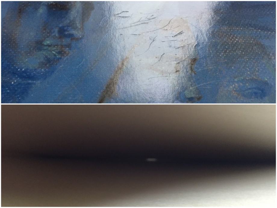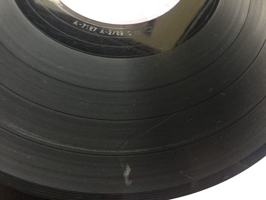 Pogledajte priložene fotografije oglašenog primjerka i YouTube video, koji sadrži iste fotografije veće razlučivosti i autentičnu snimku zvuka s početka prve strane, napravljenu amaterskom opremom. Ploča je u potpunosti poslušana, svira bez preskoka igle i daje zvuk otprilike onakav kakav je u spomenutoj snimci, ovisno o kvaliteti opreme kojom se zvuk reproducira. Glede ogrebotina, mnogo ih je, samo neke su upadljive, sve su plitke i ne utječu na zvuk. Uzdužna oštećenja brazdi su mjestimično upadljiva, uzrokuju vrlo tiho pucketanje i jedva primjetnu distorziju zvuka. Hrbat omota je probijen, ostali rubovi nisu. Ostalo o stanju oglašenog predmeta govore fotografije i video.