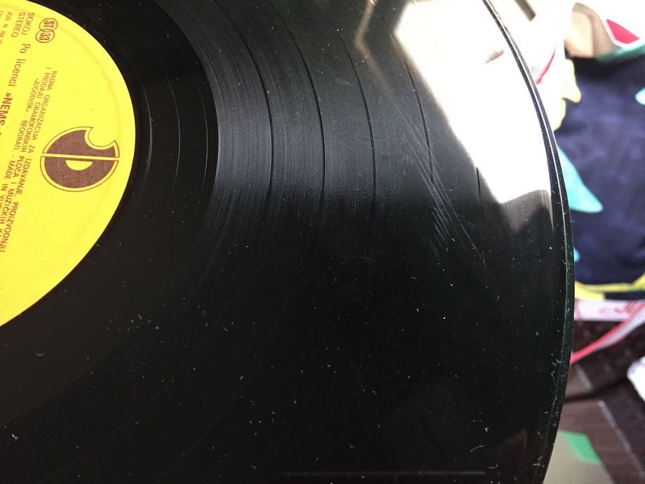 Pogledajte priložene fotografije oglašenog primjerka i YouTube video, koji sadrži iste fotografije veće razlučivosti i autentičnu snimku zvuka s početka prve strane, napravljenu amaterskom opremom. Ploča je u potpunosti poslušana i stalno daje zvuk otprilike onakav kakav je u spomenutoj snimci, ovisno o kvaliteti opreme kojom se zvuk reproducira. Jedan od mojih gramofona reproducira zvuk bez preskoka igle, drugi sa dva preskoka igle kod prve pjesme na drugoj strani. Dakle, ovisno o debljini igle, mogući su preskoci igle tijekom sviranja. Glede ogrebotina, sve su plitke i ne utječu osjetno na zvuk. Svo tiho pucketanje, šum i jedva primjetna distorzija koji se čuju u snimci, kao i spomenuti preskoci igle, uzrokovani su uzdužnim oštećenjima u brazdama, koja nisu upadljiva. Ostalo o stanju oglašenog predmeta govore fotografije i video.